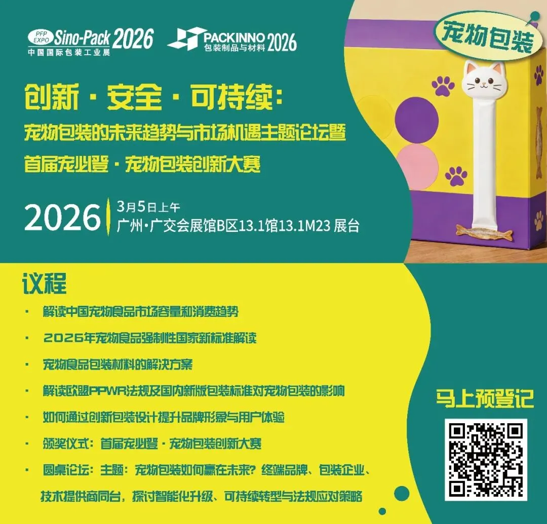 同期配套打造【创新.安全.可持续:宠物包装的未来趋势与市场机遇】主题论坛、【宠物包装如何赢在未来】圆桌研讨会、【宠必登・宠物包装创新大赛】等活动,一站式助您洞察千亿宠物经济下的包装新潮流,为您的产品增添附加值。