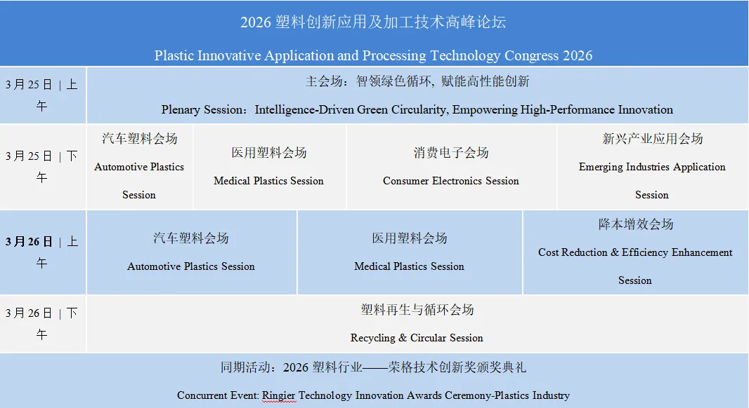大会设置汽车塑料|消费电子|医用塑料|新兴产业应用(具身机器人/低空经济/可穿戴设备等)|降本增效|塑料再生与循环六大主题分会场......除此之外,大会还设置了茶歇交流、展区参观、供需匹配、创新材料应用等多种互动形式,为大家提供了一个商务交流平台,令与会者们受益匪浅。同期一年一度的“塑料行业-荣格技术创新奖”颁奖典礼亦会带来行业新的产品与创新技术。