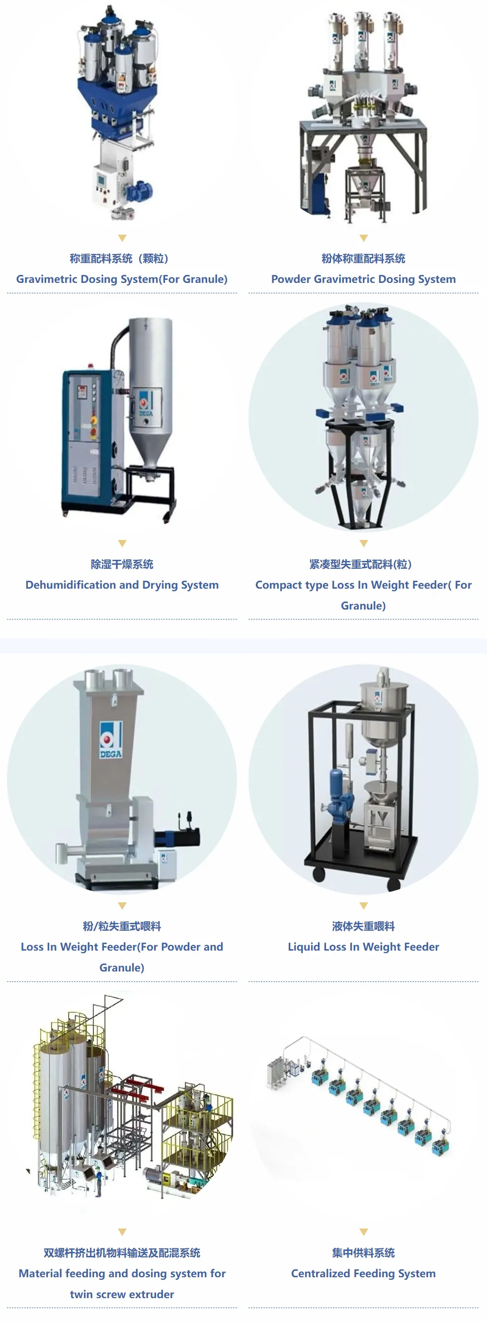 常州戴格主要经营产品有:称重混配料设备,集中供料系统,除湿干燥设备,颗粒料、粉料输送,模温机,色母机,输送带,机械手,金属分离器等,产品可广泛应用于塑化、食品,医药等诸多领域。为了满足市场需求戴格公司坚持创新,高效解决客户问题,成为您塑料加工自动化过程领域值得信赖的合作伙伴。