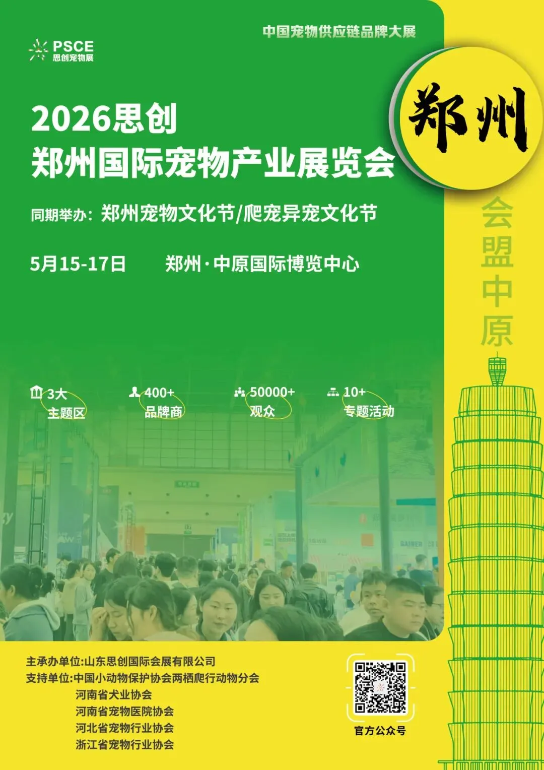 2026年5月15日至17日,华中地区宠物行业的目光将聚焦郑州·中原国际博览中心——思创·郑州国际宠物产业展览会即将璀璨启幕。本届展会以“链动产业,宠爱生活”为主题,同期重磅推出中原宠物文化节与郑州异宠爬宠鹦鹉产业展览会,全面打造集资源对接、商贸合作、文化交流于一体的宠物产业生态盛会。在郑州宠物消费市场迎来爆发式增长的当下,本届展会的举办恰逢其时,将为行业搭建起链接全链价值的重要平台。