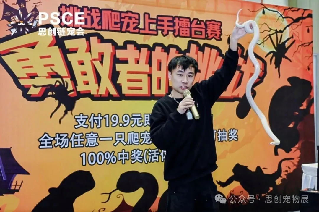 爬宠文化节专区特别策划“上手挑战赛”,在专业老师指导下,观众可尝试与玉米蛇、守宫、鬃狮蜥等温顺爬宠亲密接触,克服恐惧,零距离感受爬宠世界的奇妙触感,挑战成功还有惊喜好礼。