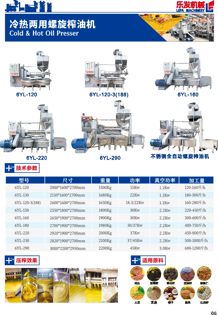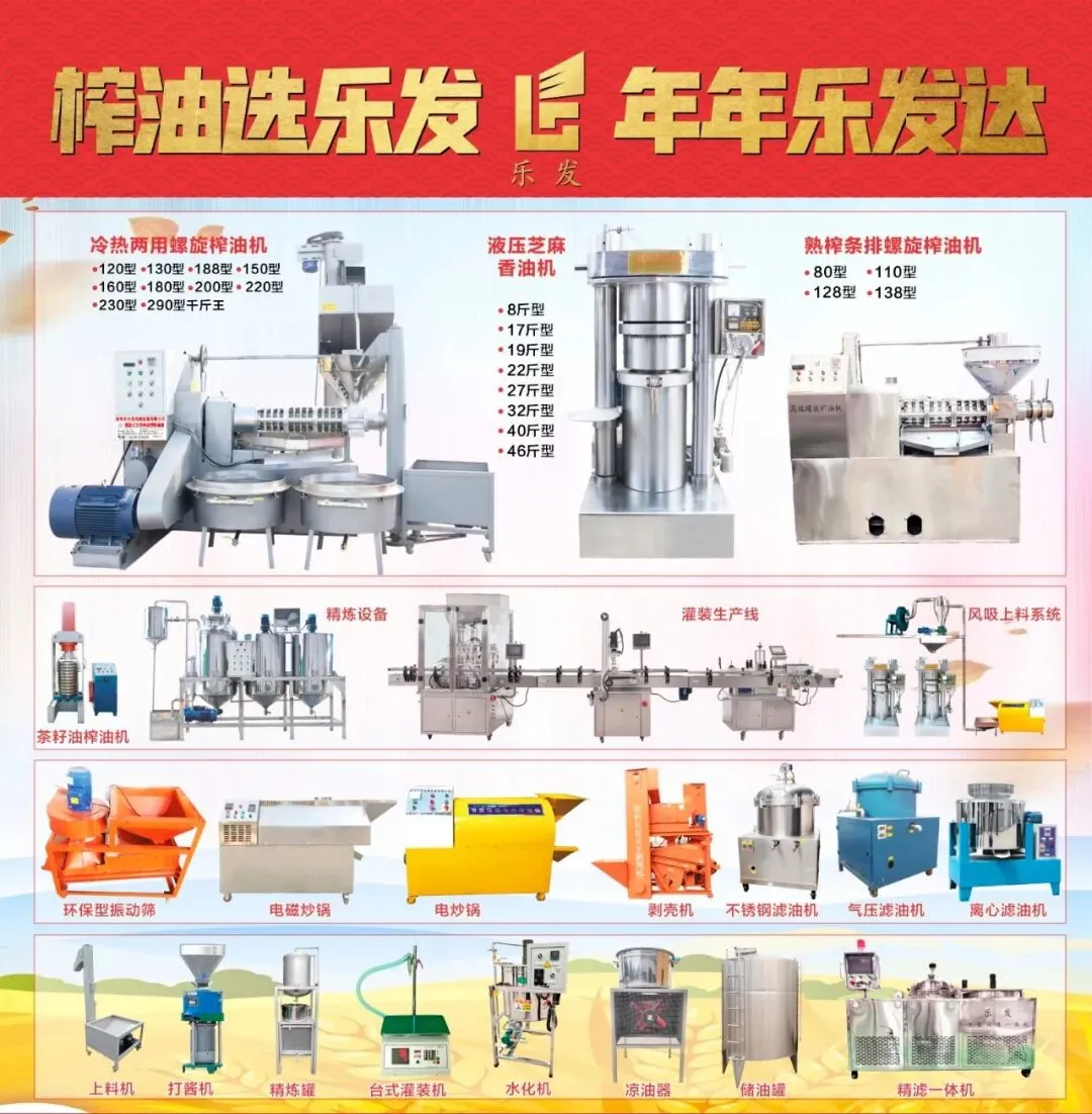乐发榨油机系列,有商用小型榨油机配套设备到大型油厂加工生产线配套设备,全面升级,轻松压榨多种原料,原料营养保留完整,口感香醇不油腻,可榨菜籽、葵花籽、花生、亚麻籽、大豆、核桃等多种原料,适用范围,工厂、油坊、食堂、美食城、商铺等等! 以下乐发机械系列设备产品、压榨物料的视频,及生产线配套设备,提供给大家参考。 螺旋榨油机自动喂料系统,大大提高生产效率,并获得国家专利认证,新型榨油机对变速箱进行重大改进,从而大大减少能耗,降低生产成本,提高经济效益。新一代榨油机操作简单,容易上手。