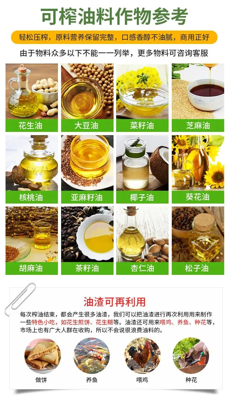 根据大家需求还可以根据自己情况选配,快来选购机器,定制适合自己使用的配套设备。公司工厂地址:河南省南阳市宛城区溧河工业园区纬九路与华山路交叉口东南角(乐发榨油机)网址:http://www.037763613236.com
