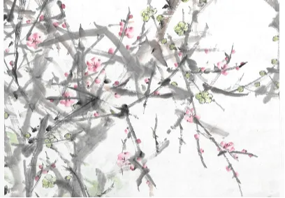 他的作品往往透着一种“清冷”之气。这幅画作不仅是自然景象的描绘,更是他作为“出家僧人”超然世外、淡泊名利的人格写照。站在这幅《梅鹤图》前,我们能感受到虚谷对传统文人画的当代转译。他用那种“宁方勿圆”的断续线条,在百年前的上海画坛开创了一种前卫的审美结构。