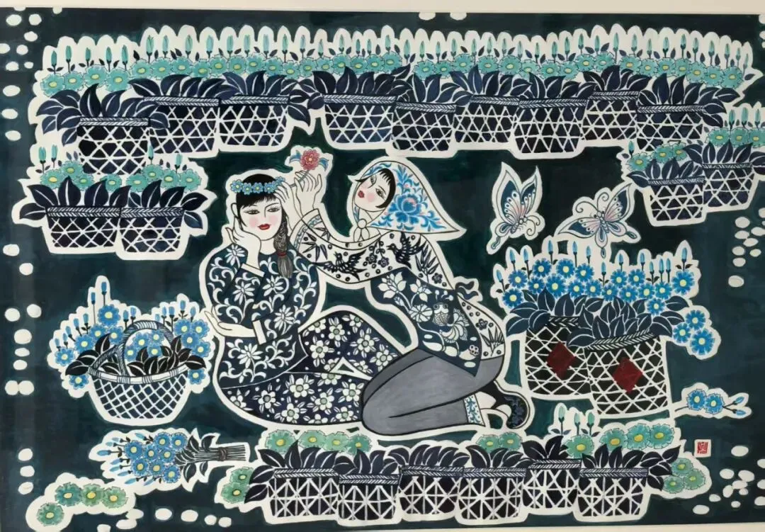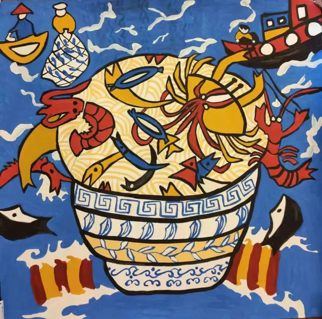 今天,在乡村振兴的时代号角里,农民画迎来了又一次“破土”。内蒙古自治区文化馆、浙江省文化馆、山东省文化馆、重庆市群众艺术馆、贵州省文化馆、新疆维吾尔自治区文化馆六家省级“文化会客厅”携手联动,策划“艺术点亮乡村——首届‘农民画’省际交流活动”。展览收到六省(区、市)数百位农民画作者投稿178幅,遴选120 幅精品集中呈现。它们带着泥土的芬芳、海风的咸鲜、高原的旷远、水乡的温润,共同拼贴出一幅“万里河山即画布”的当代《耕织图》。