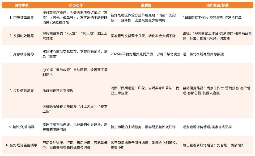 就像过年家里要大扫除,你的1688店铺也需要一次深度的“开荒”。不要一上来就疯狂发新品,系统会懵,买家也会懵。
