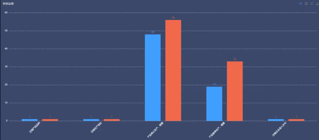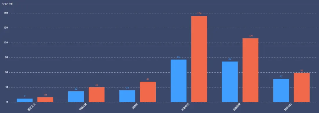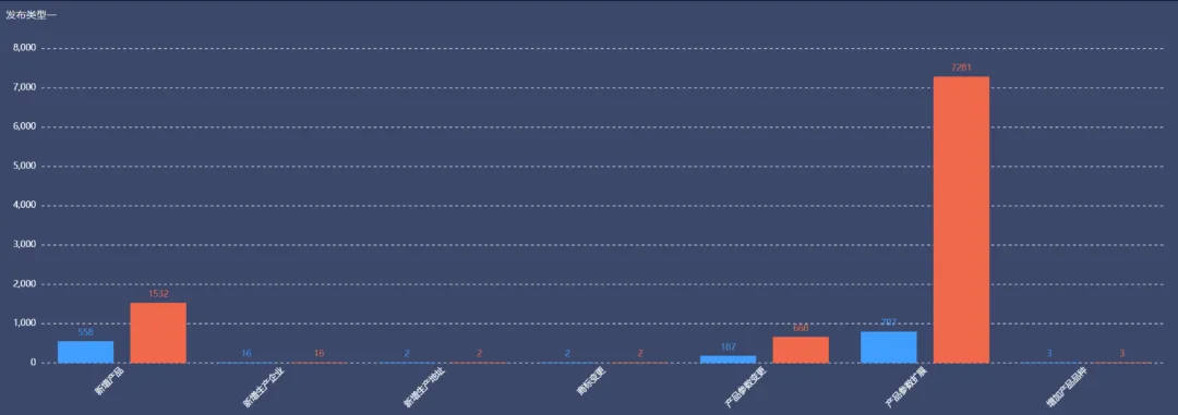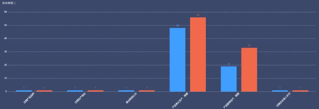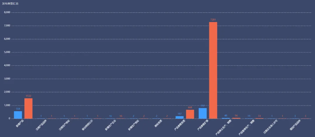 蓝色:申报企业数量 橙色:新增产品数量
