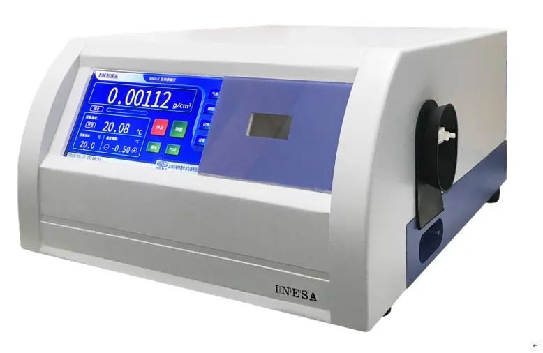 采用U型管振动工作原理,能快速测量液体密度,具有电子激发、振动频率计数及显示功能。通过把少量样品注入到振动试样管中,根据试样管振动频率发生的变化,结合标定的数据,从而计算样品的密度。
