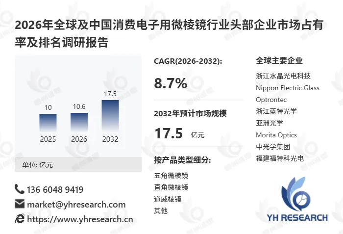 以下内容来自恒州诚思YHResearch出版的《2026年全球及中国消费电子用微棱镜行业头部企业市场占有率及排名调研报告》,同时提供英文,日文,韩文等不同语种版本报告。