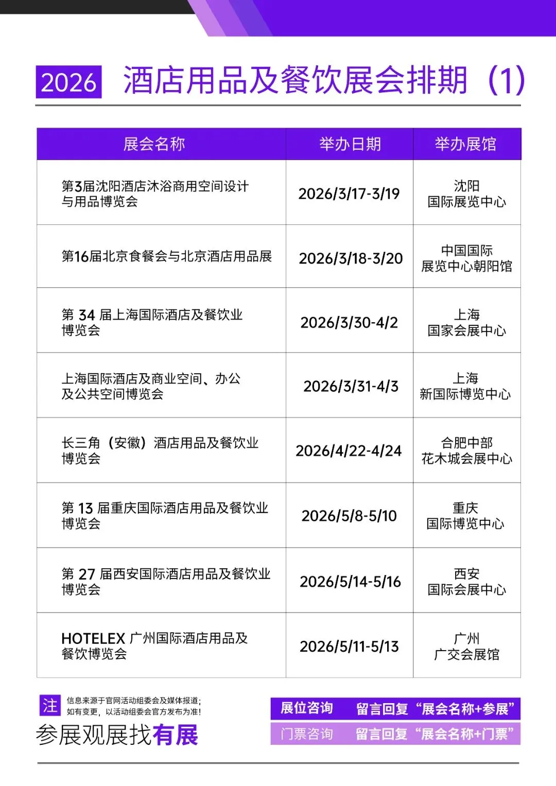 2026年全国酒店用品及餐饮展会排期详情(图文版)