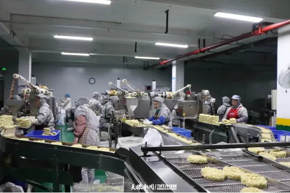 2月25日,走进位于遵义市汇川区的遵义金紫阳食品有限公司生产车间,机器轰鸣声不绝于耳,7条生产线全速运转,380余名员工在投料、质检、打包等岗位上忙碌作业。历经几十道工序,一包包印着“金紫阳”商标的方便面整齐装箱,即将发往全国各地及海外市场。
