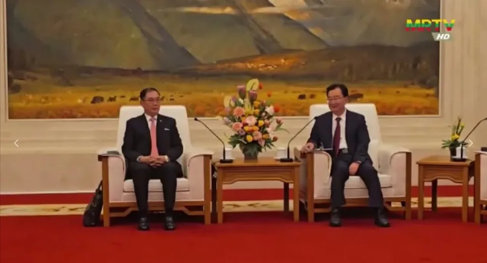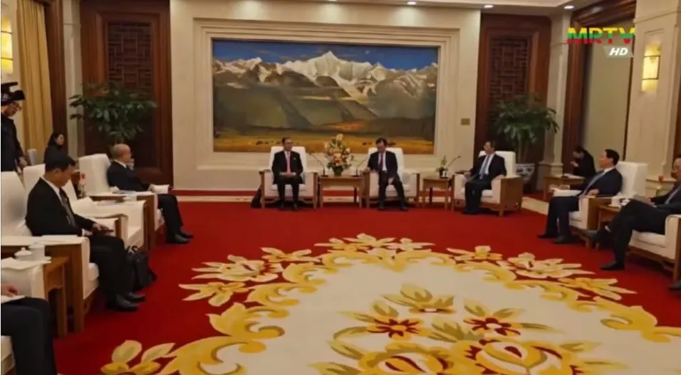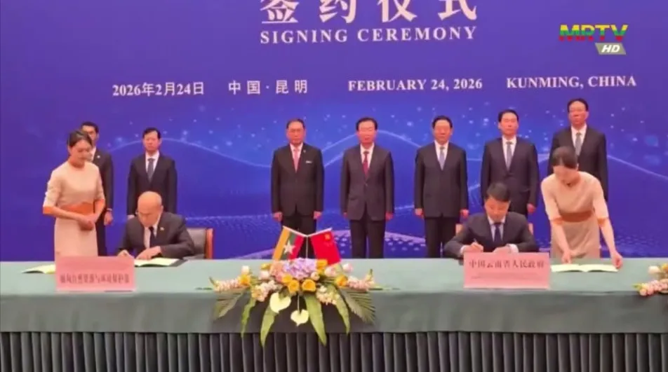 2026年2月26日内比都讯。据缅甸国家电视台MRTV报道,2026年2月24日,在中国云南昆明海埂(HAIGENG GARDEN)大礼堂,缅甸资源与环保联邦部长吴钦茂依(ဦးခင်မောင်ရီ)与云南省副省长签署了有关在云南瑞丽姐告举办缅甸珠宝展的合作备忘录MOU。@ONE NEWS MYANMAR;MRTV
