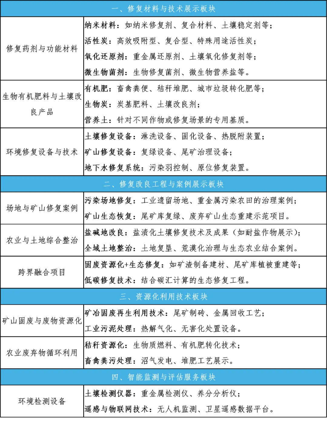 主要领域:矿山生态修复、农业废物资源化、大宗固废资源化、场地土壤余地下水修复、农业面源防治、全域土地综合整治、生态农业、盐碱地改良、耕地质量提升、水生态综合治理等。