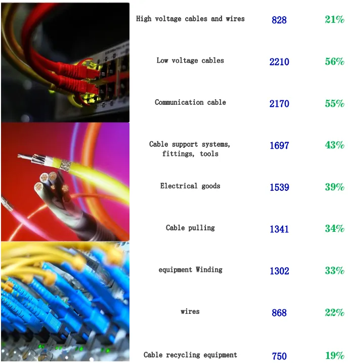 电线电缆:电力电缆、特种电缆、高压/超高压交联电缆、新能源电缆、太阳能/风能电缆、海洋工程用电缆、海底电缆、通信电缆、阻燃电线电缆、阻燃耐火软电缆、铁路信号电缆、核能电缆、射频电线电缆、同轴电线电缆、舰船车辆电线电缆、矿用电缆、屏蔽电缆、架空电缆、通用橡套电缆、控制电缆、数据信号电缆、裸电线等;