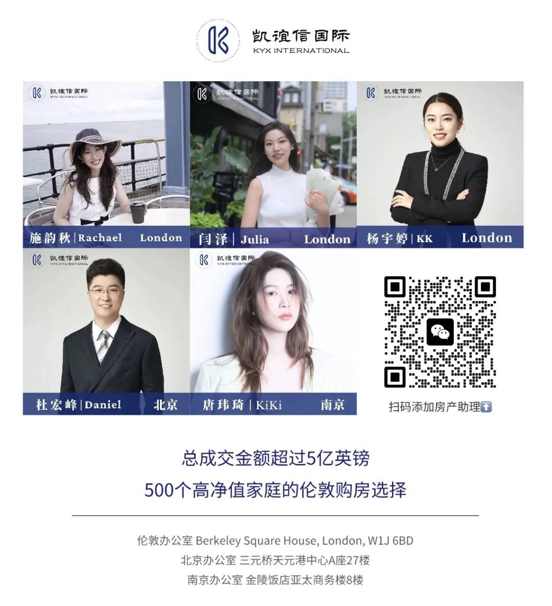 * 了解更多伦敦住宅项目,预约线上及实地看房,定制投资方案,委托房产出租及全托管服务,请扫描下方微信二维码联络凯谊信英国房产业务部,我们将为您提供最专业、周到的一站式服务。