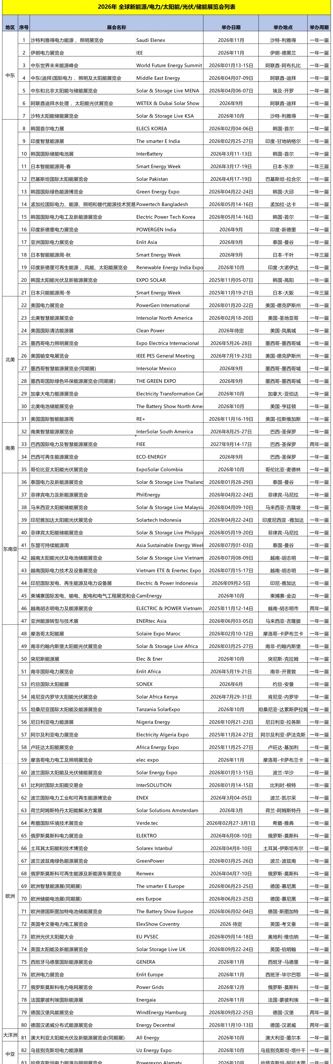 太阳能展全球计划表