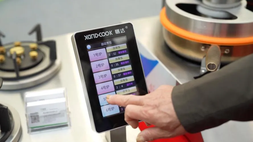 智能炒菜机便会自动下料、翻炒