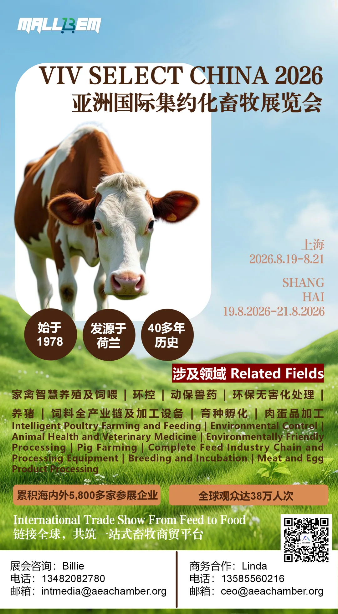 亚洲国际集约化畜牧展览会,1978年源于荷兰,迄今已有40年代额历史。该展会涉及的领域包含:家禽智慧养殖及饲喂/环控/兽药/环保无害化处理/养猪/饲料产业链及加工设备/育种孵化/肉蛋品加工等等。 当前,该展会累计海内外5800多家参展企业,全球观众达38万人次。 如果您感兴趣参展,欢迎联系我们! 8月来上海,为您的畜牧产业赋能!