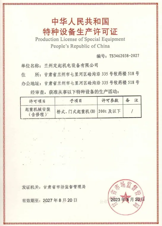 兰州定起机电设备有限公司,是一家专注于起重机械及配件销售、安装、修理、改造,工程施工及相关物资材料供应的专业化机电企业。