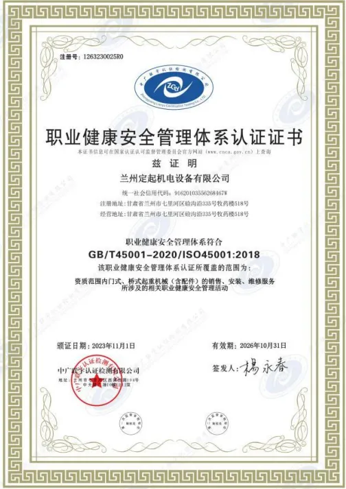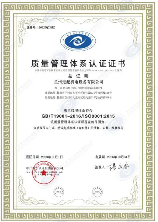 公司始终秉持工匠精神,严格遵循《起重机械安装改造重大修理监督检验规则》等国家标准,从施工方案编制、技术交底、现场吊装,到调试验收、资料归档,每一个环节都执行“自检、互检、专检”三检制度,确保工程质量零缺陷、安全运行零事故。同时,公司视质量为生命,建立完善的质量管理体系和严格的质量检测验收制度,确保每一台设备、每一项工程都达到高标准合格要求。