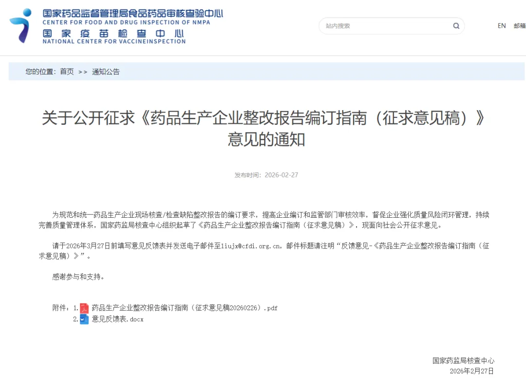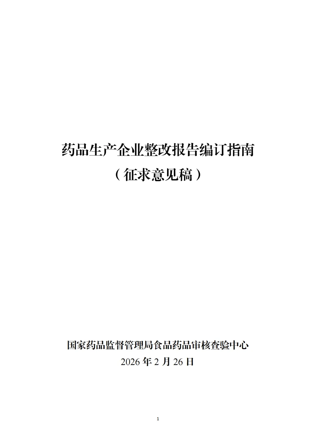 【行业动态】关于公开征求《药品生产企业整改报告编订指南(征求意见稿)》意见的通知