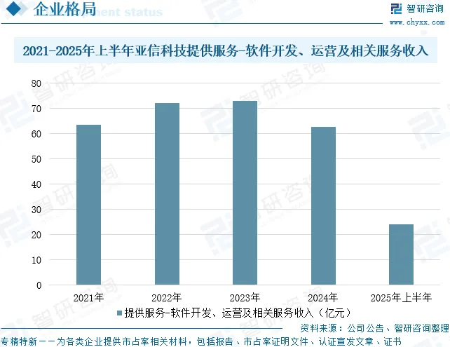 亚信科技控股有限公司(简称:亚信科技,股票代码:01675.HK)始于1993年,2018年12月19日成功在香港联交所主板上市,是领先的信息技术产品及服务提供商,领先的数智化全栈能力提供商。亚信科技综合运用咨询规划、产品研发、实施交付、系统集成、数据运营、智能决策、客户服务等数智化全栈能力,为百行千业提供端到端、全链路数智化服务。公司深耕市场30年,在5G、云计算、大数据、人工智能、物联网、数智运营、业务及网络支撑系统等领域具有先进的技术能力和众多成功案例,客户遍及通信、广电、能源、政务、交通、金融、邮政等行业。亚信科技秉承“一巩固、三发展”战略,坚持“产品与服务双领先”,高质量巩固BSS市场的领导地位,高速度发展5G OSS网络智能化、DSaaS数字化运营、垂直行业和企业上云等新兴业务。公司积极拥抱5G、云计算、大数据、AI、物联网等先进的技术,形成了云网、数智、IT三大产品体系。随着国际和国内技术发展变革,亚信科技提出“四个转变”新格局,即从“以通信业务为主”向“通信+非通信业务”转变,从“单纯做服务”向“产品+服务”转变,从“以纯软件为主”向“软件+硬件一体”转变,从“以国内市场为主”向“国内+国际市场”转变。数据显示,2025年上半年,亚信科技提供服务-软件开发、运营及相关服务收入为23.92亿元,同比下降9.67%。