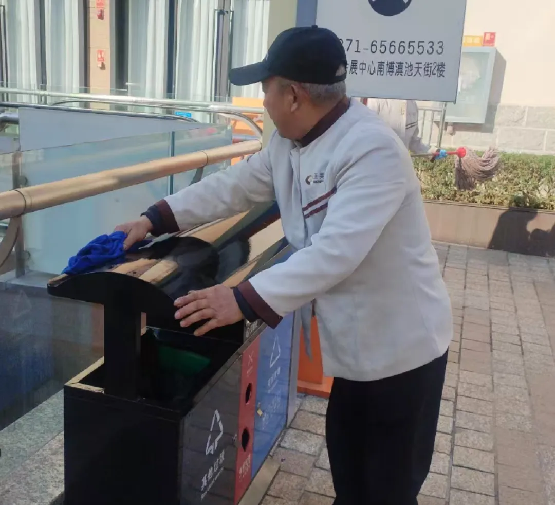 每一次弯腰,都是对岗位的坚守。他们用辛勤的汗水,擦亮了会展中心的“颜值”。