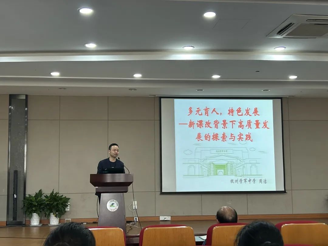 周洁副校长结合紫金港校区在教学与管理方面的具体做法,精准地分析了当下新高考的形势,分享了学科作业的选编、高一学生的选科以及其他的教育教学方法。深入浅出,内容丰富,为我们提供了许多宝贵的借鉴经验。