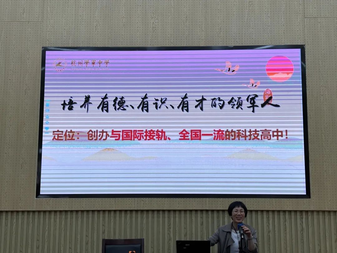 海创园学校冯定应副校长分享了学军中学的办学历史,强调学校的发展需要紧紧抓住历史机遇,应时而为,乘势而上,为我们指明了学校发展的方向。