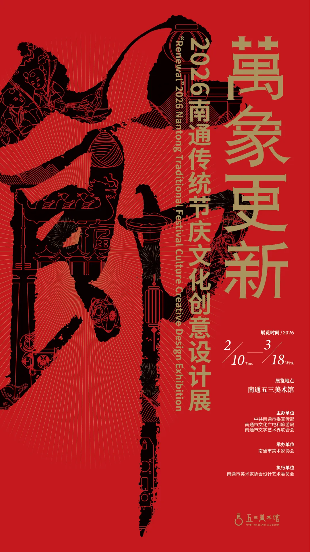 在新的历史起点上,推动中华优秀传统文化创造性转化、创新性发展,是时代赋予我们的重要使命。传统绝非静止的化石,其旺盛的生命力恰恰体现在与时代同行、与生活共鸣的持续演进之中。为此,我们共同主办“万象更新——2026南通传统节庆文化创意设计展”,旨在搭建一个探索与实践的平台,核心在于回答一个关键课题:如何让深厚的历史文脉,通过当代设计语言的创造性转译,真正“活”在当下、“热”在民间、“新”在生活。