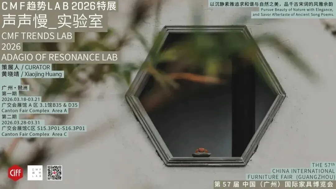 CMF趋势LAB-“声声慢”实验室,将宋词的韵律与意境凝练为可感知的当代设计语言。以天然木材、藤编与青白玉等材料,诠释含蓄的色韵、温润的肌理与精微的尺度。从融入书法笔意的“乙巳”桌案,到以玉喻竹的“节节高升”花瓶,再到取意飞檐的麻纤维灯饰,每一件作品都在探索古典元素与现代生活的有机融合,让东方美学在器物之上静静流淌。