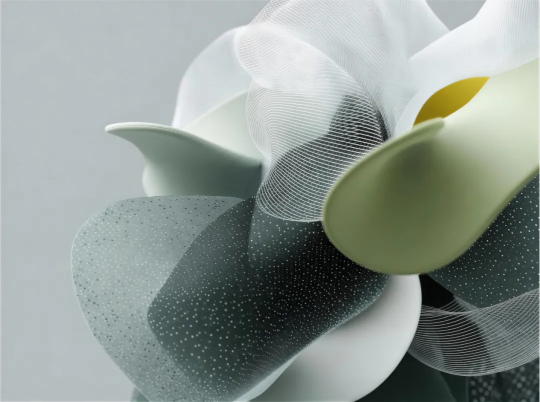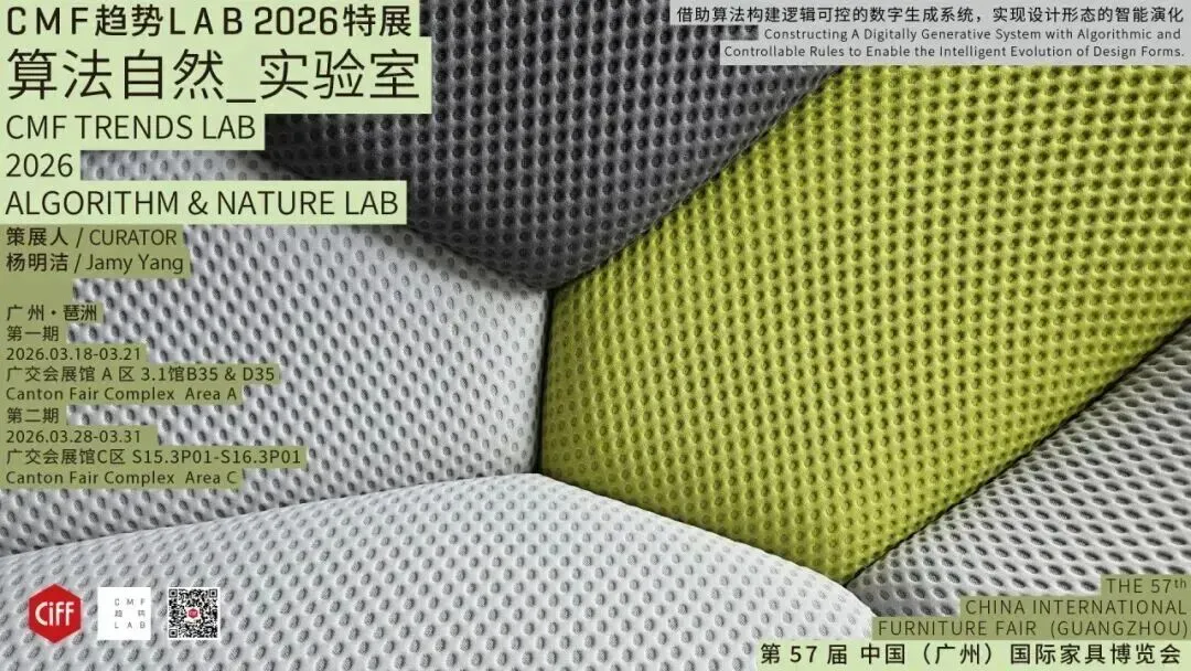CMF趋势LAB-算法自然实验室借助算法构建逻辑可控的数字生成系统,实现设计形态的智能演化。实验室将呈现由碳纤维丝线编织而成的“翻花绳椅”,丝线在定点间穿梭,结构稳固,形态优雅如绳结艺术;采用5系铝合金一体成型的“宁德时代超薄磁吸充电宝”,兼顾轻薄与结构强度,展现精密制造与功能美学;由PETG为结构⻣架、不锈钢为⽀撑脊线、玻璃为承载界⾯组成的流光茶几,光从结构内部渗出,柔化空间边界,营造松弛氛围。