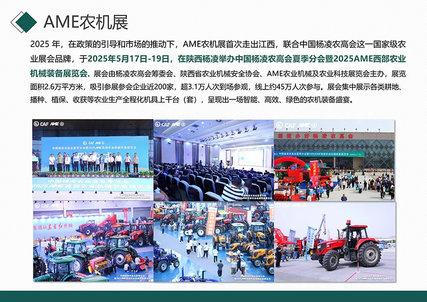 2026第六届中部(江西)农业机械及农业科技展览会及中部农资信息交流会暨产品交易会将通过“农机展+双交会”的深度融合,让AME农机展+双交会成为政策落地的试验田、技术创新的孵化器、供需对接的高速路。