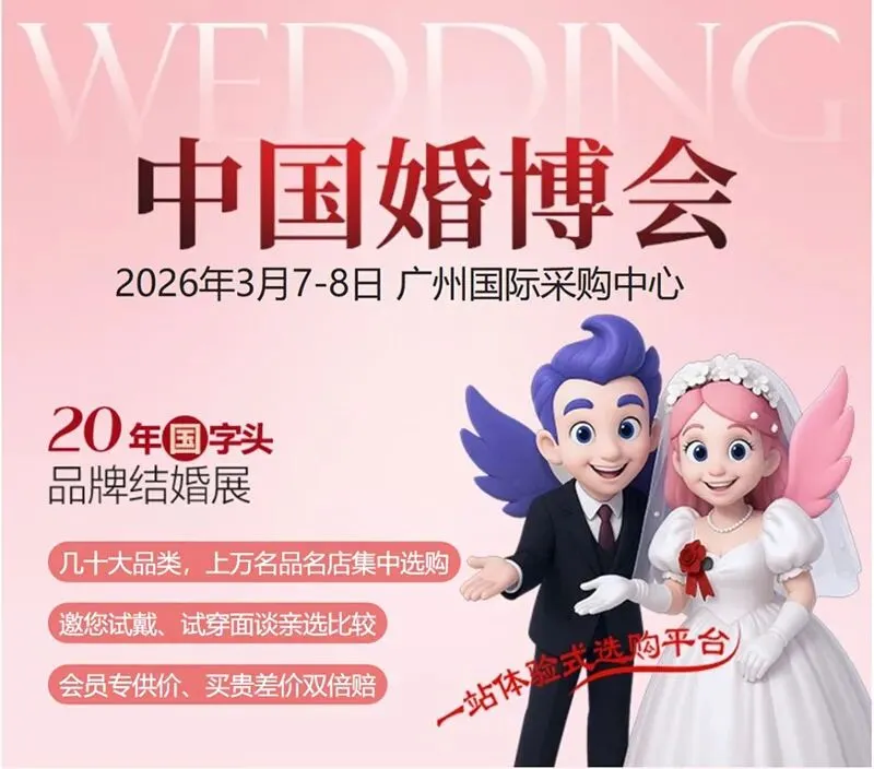 2026广州婚博会将于3月7-8日在广州国际采购中心重召开!中国广州婚博会严选国际国内一线大牌、小众精品、设计师定制品牌、30万款结婚新品,惠及结婚新人,让您享受高性价比一站式结婚采购服务、轻松筹备您的品质婚礼。