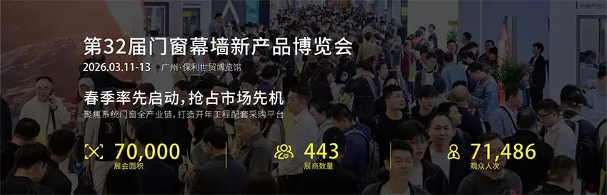 2026第32届WINDOOR门窗幕墙新产品博览会(简称:2026广州门窗幕墙展),将于2026年3月11-13日在广州保利世贸博览馆盛大启幕!