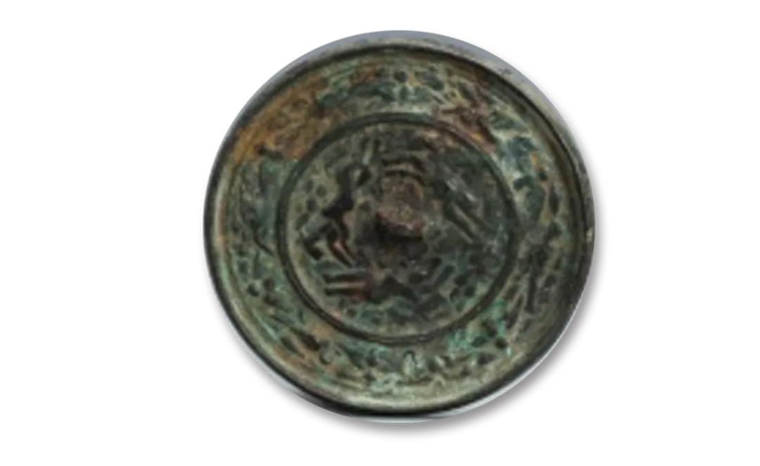 1997年新集乡白草洼出土,彭阳县博物馆馆藏鎏金夔龙纹青铜节约共2件,直径4.7厘米。整体是三条龙呈团簇状在云中相拥,面目清晰,脊体饰凸点纹,背有四桥型钮,通体鎏金。鎏金是将金和水银按照一定比例配置成合金膏泥(金汞齐),而后涂于器物表面,加热后水银挥发,金留在器物表面的工艺。节约本意是马辔头上用于连接马络首和辔带的配件,起到交叉联通皮带的作用,后衍生出了“节制、约束”之意,逐渐形成了现在我们所说的“节约用水用电”等固定用法。