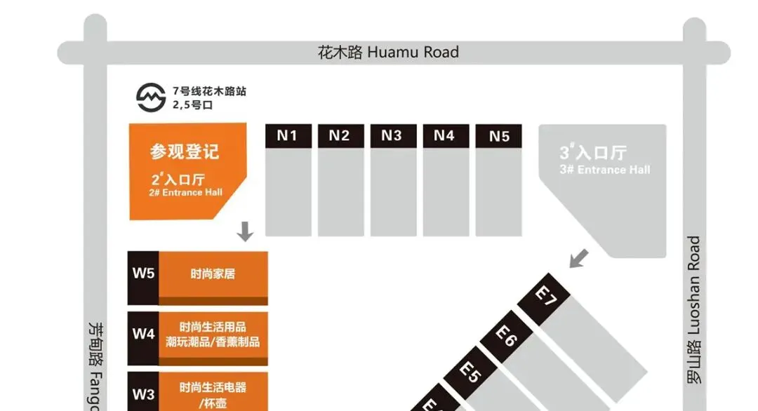 往2号北入口大厅:乘7号线至花木路站2号或5号出口,步行约3分钟