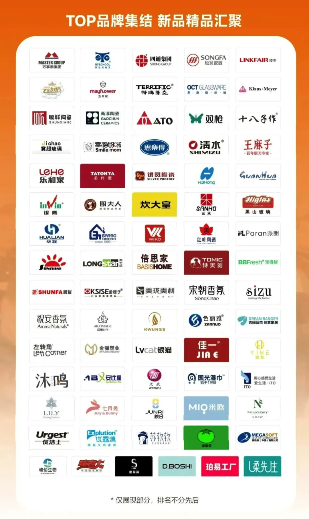作为家居百货行业春季第一展,展示时尚厨房用品、时尚餐厅用品、时尚家居用品、个护及日化美妆,搭建全品类、一站式采购平台。截至目前,国内外行业巨头已率先抢占展位,如万事泰、三禾、三厦、银鹰、凌丰、百特、炊大王、王麻子、十八子、永光刀剪、天戟、味老大、双马、特瑞菲克、冀超、乐和家、嘉宝、山海、黑山,瀚邦、奥康德、华富美、展鹏翔、银凤、斯达高、新明瓷、福兴业、隆年华、爱拓、华联、景德镇陶瓷集团、高淳、陶润、顺祥、海鸿、松发、原是家居、特美刻、色丽雅、清水、思乐得、木森、志博、吉姆蓝杰、云娜、宝得鲜、益昌、文武包装、爱纽牧、安比星、龙士达、银猫、沐鸣、金猫、毛豆角、步术、舒乐佳、达伦特、四卒、金王、旷世智源、香薰时代、国光、维达、百合洁品、米欧、苏软软、思菲其、星晨、哲凡生物......一批业内优秀品牌。
