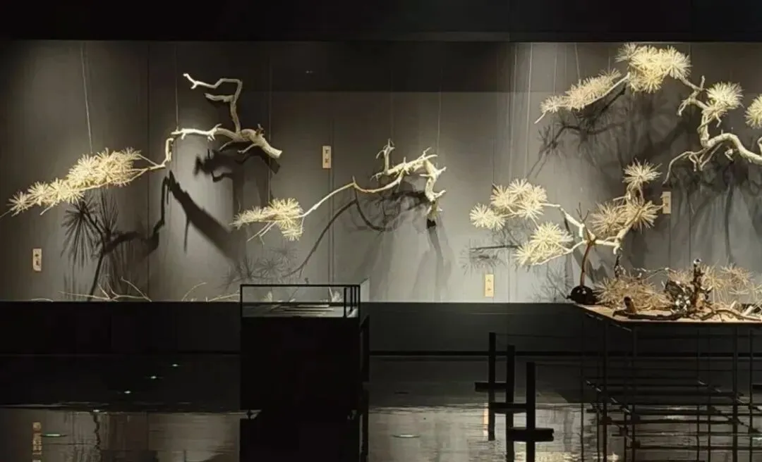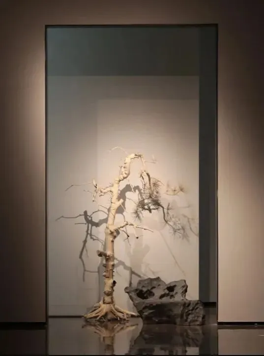 ◎ 清 · 刘焜《山水图轴》 绢本设色 广州艺术博物院藏当传统的松意象走进当代现实,其含义也随之更新。本次展览展出的史金淞“松系列”装置作品,为这场跨越数百年的对话注入当下的思考。◎ 史金淞《仿戴进悬松.仙人指路》 各种树木 尺寸可变 2006广州艺术博物院(广州美术馆)四层16号展厅