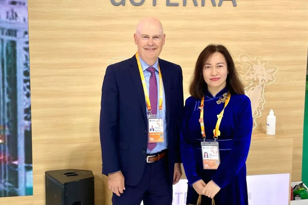 11月5日至10日,第七届中国国际进口博览会在上海举办,在中国展区内蒙古馆非遗文创展区,看着手中充满蒙古族特色的非遗计氏羊皮画作品,来自美国的多特瑞中国区总裁麦欧文对身着内蒙古特色服饰的传统文化守护者计颖称赞道。