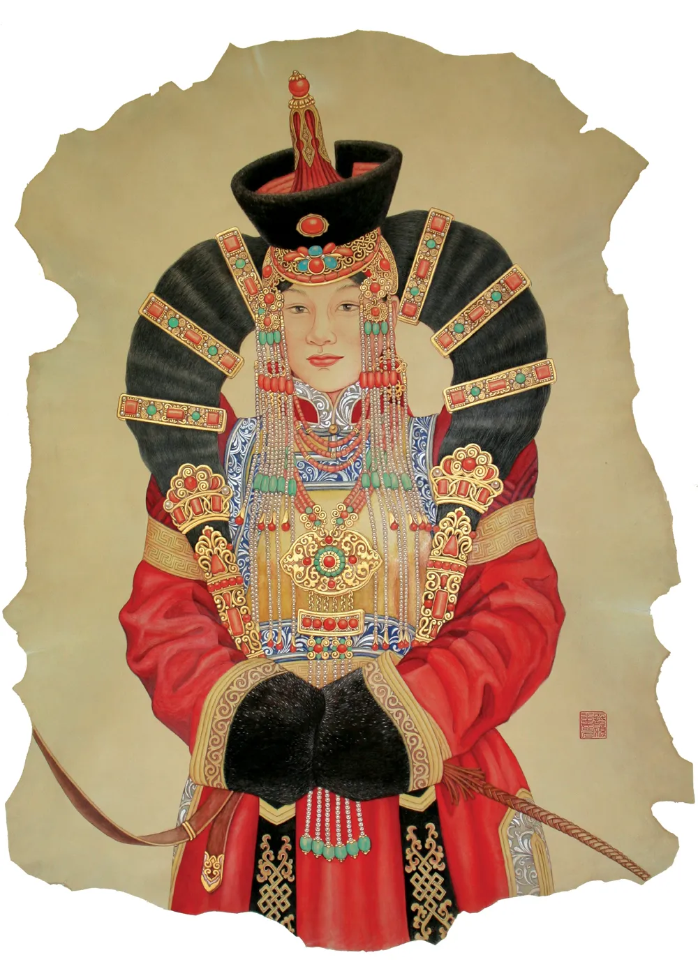 计氏羊皮画作品《喀尔喀新娘》