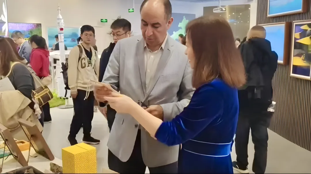 “这幅《喀尔喀新娘》展现了独特的民族风情,从服饰到神态,每一处细节都蕴含着对民族文化的深刻理解与感悟。”“这幅《花鸟》描绘出了动物的灵动之美,将中国传统花鸟画的韵味展现得淋漓尽致。”来自世界各地的观展者纷纷被栩栩如生的画作吸引。