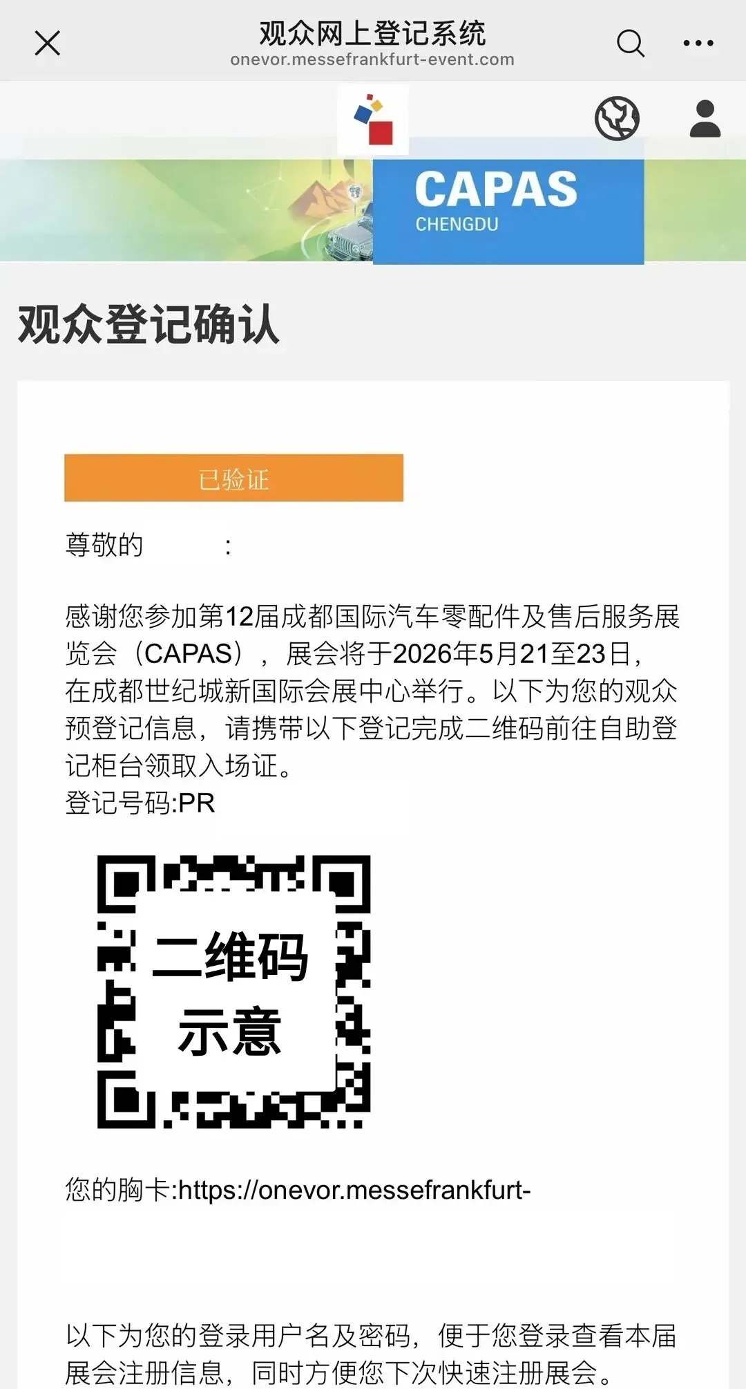 完成登记后,凭「登记确认二维码」在展会现场登记处换取观众入场证。