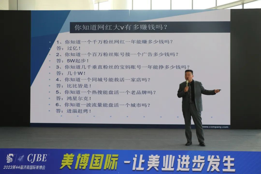 从产地直供原料,到耗材产品,在到仪器用具和技术指导,部分大健康产业链在2023济南国际美博会中得到了完美呈现。现场体验、洽谈、签约购买一气呵成。上午举办的北方美谷新电商合作合作论坛以“数字美业,增长有质”为主题,微盟增值运营总监朱玉柱,微盟智慧营销研究院副院长、腾讯广告认证高级讲师於承玮作为主讲嘉宾,围绕私域流量运营趋势,如何实现新数字增长,聚焦全新经营理念,打造全层新链接,赋能美业门店增长,与大家共同探索美容行业数字化营销新机遇,在问答交流环节两位老师针对观众提出的一些问题进行了解答,吸引了诸多观众观看。下午山东医美管理与运营创新论坛有山东省民营整形美容协会主办,在山东国际会展中心二楼6.7号馆共享大厅会议室举办,特邀了聚客医美合伙人金琪、聚客医美创始人贾方以及短视频赛道头部知识博主大杰老师,以论坛的形式,助力行业,分析医美行业新形势,探索医美管理新模式,分享医美管理新尝试。