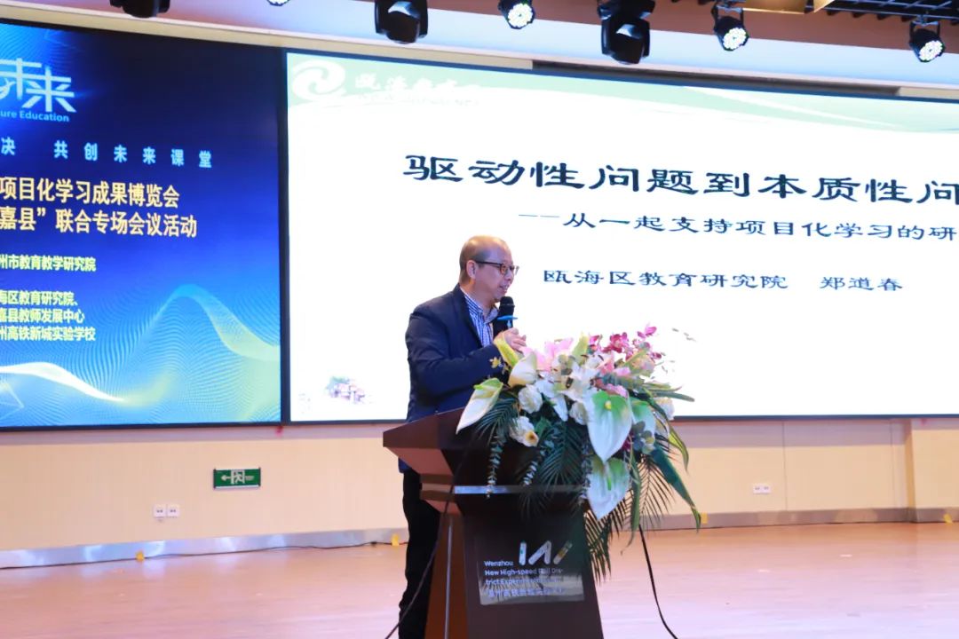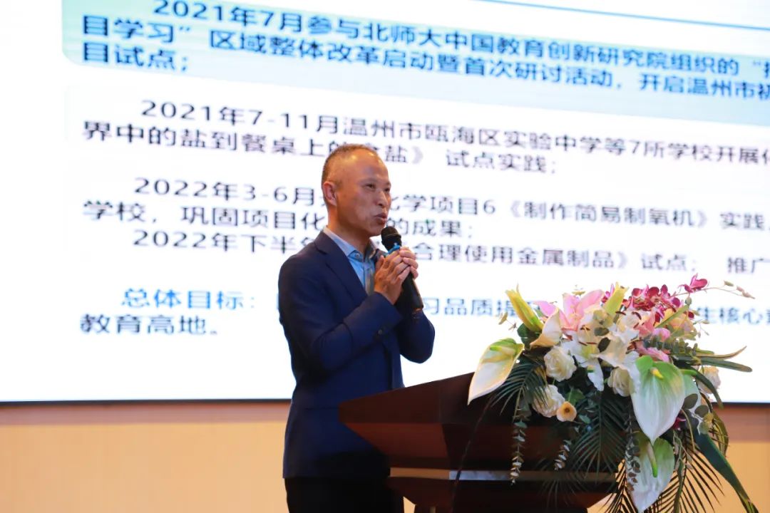 李玉宇在活动致辞中以“欢迎”“感谢”“期待”三个关键词致以诚挚的寄语,肯定了本次活动“平台好、内容好”两大亮点。他指出,项目化学习迎时代浪潮而上,推动教育形式与内容变化,构建学习新样态。同时,相信瓯海、永嘉两地携手,将在项目学习的道路上行稳致远,结出丰硕的果实,实现“教研共富”。