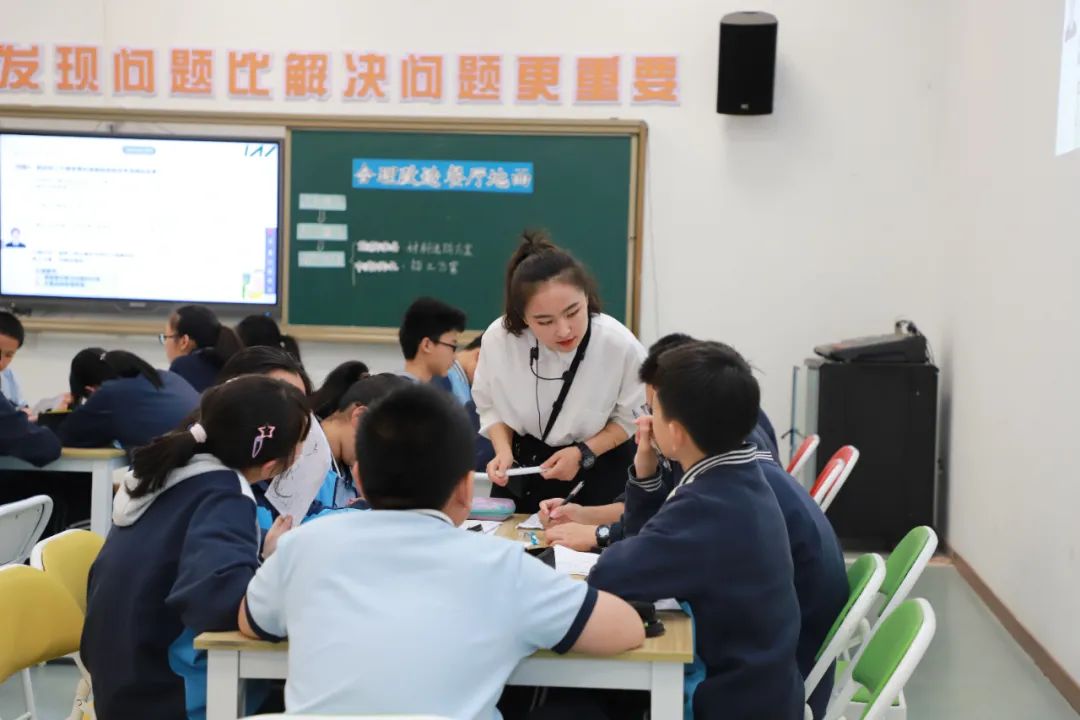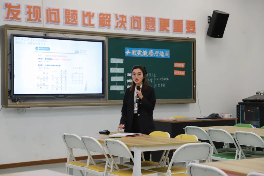 初中数学分会场上,温州高铁新城实验学校邱倩老师为大家展示《合理改造餐厅地面》项目。邱老师立足教材知识,引导学生利用二元一次方程组和不定方程求解多种可行的招工方案。课堂上,基于问题驱动,七年级学生们纷纷化身设计师,积极开展评价方案、探究影响因素、寻求解决方案等活动,在自主探究中自主落地核心素养。
