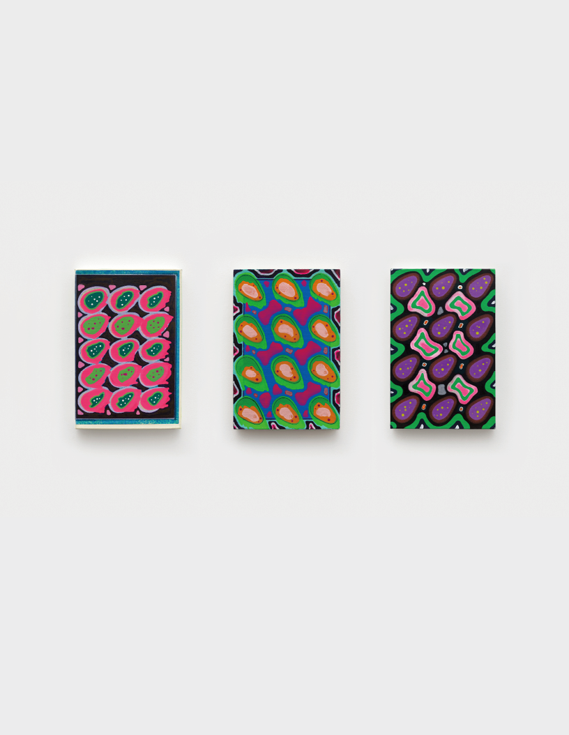 高露迪 GAO Ludi,草莓 No.15,草莓 No.16,草莓 No.18 Strawberry No.15, Strawberry No.16, Strawberry No.18,2021-2022,布面丙烯,水彩,油漆 acrylic, watercolor and oil on canvas,30×20 cm; 30×20 cm; 30×20 cm