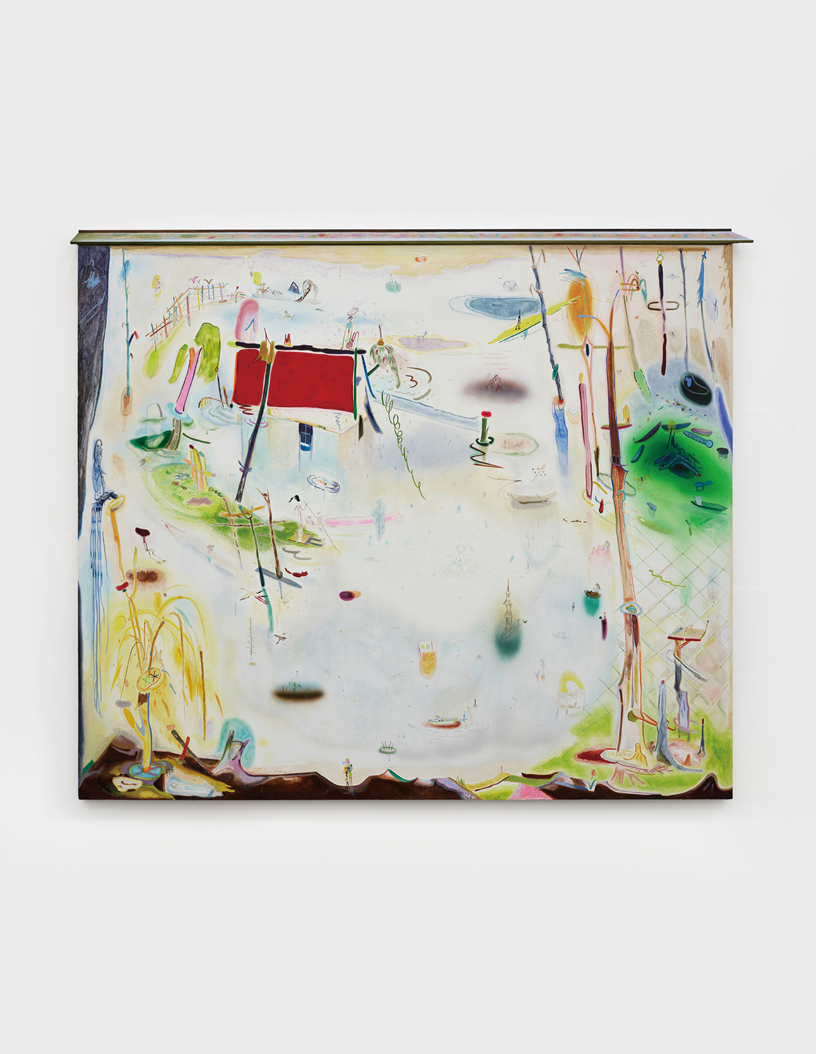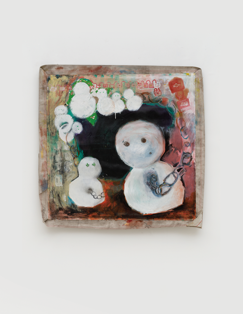 吴思林 WU Silin,洪水淹没了家 Flooded Home,2023,布面丙烯,白蜡木,石英砂 acrylic, ash tree, quartz sand,200×230 cm