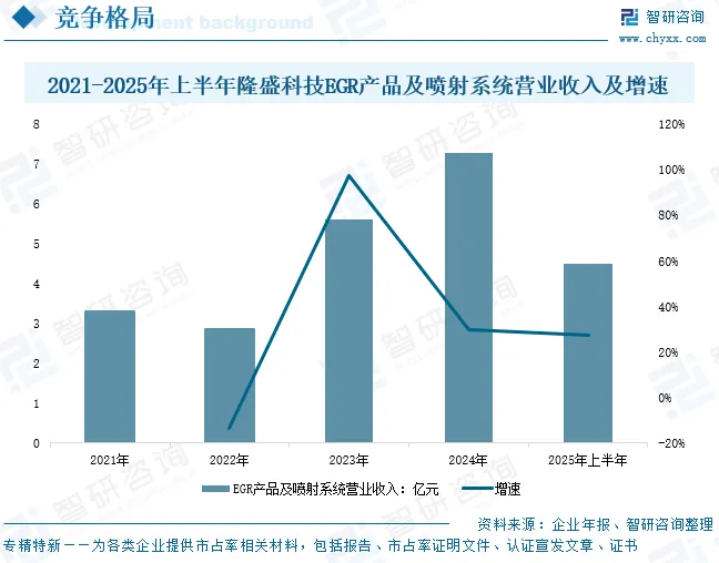 无锡隆盛科技股份有限公司作为一家科技创新驱动型企业,公司长期围绕国家战略产业发展方向,依托强劲的自主研发实力与上下游精准并购策略,现已形成以发动机废气再循环(EGR)系统、新能源汽车驱动电机铁芯及汽车精密零部件为核心的业务矩阵。其中在发动机废气再循环(EGR)系统领域,公司已深耕20余年,凭借深厚的技术沉淀、丰富的实践经验以及经市场充分验证的核心优势,已构建起EGR系统全流程产品解决方案能力。目前,EGR技术已全面赋能商用车柴油车、乘用汽油车、乘用混合动力汽车、非道路工程机械、天然气商用车等下游多类汽车市场,业务覆盖广度与深度持续拓展。2025年上半年公司EGR产品及喷射系统实现营业收入4.51亿元,同比上涨27.44%。