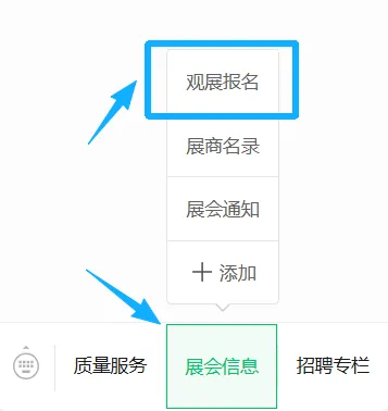 点击菜单栏【展会信息】➡【观展报名】,扫描推送的二维码,即刻进行观展报名。